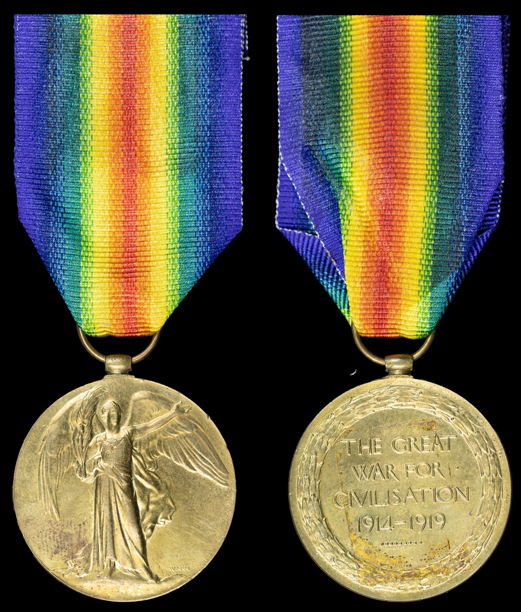 The Victory Medal awarded to Private V. N. Barrie, Royal Flying Corps, late Royal Engineers, who was reported as Missing in Action on 6 April 1917