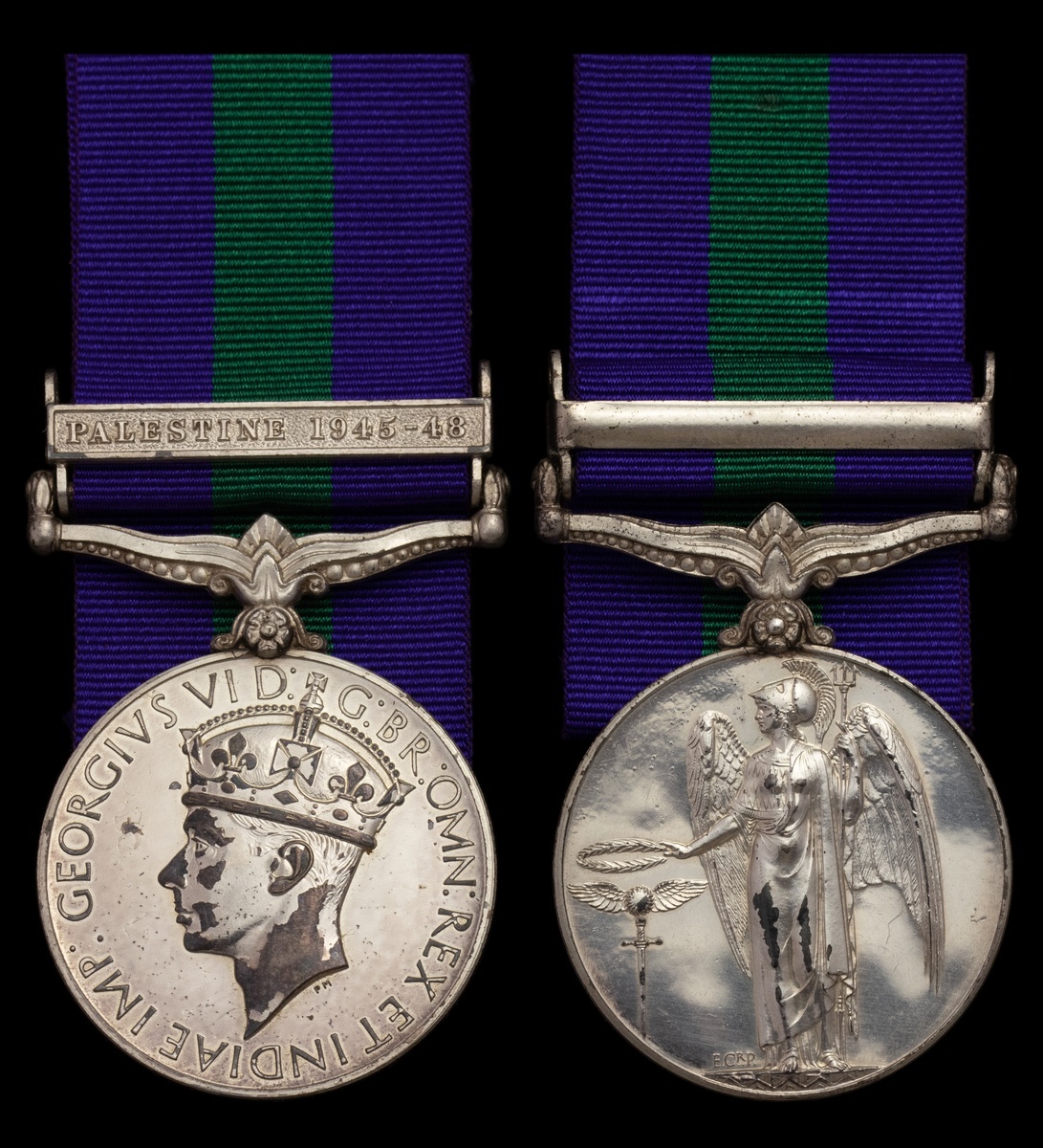 (x) General Service 1918-62, 1 clasp, Palestine 1945-48 (AS.7120 Sjt. L. Ralethele. A.P.C.), court mounted for display, lacquered, light contact marks, otherwise very fine