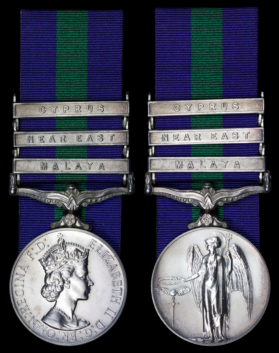 (x) General Service 1918-62, 3 clasps, Malaya, Near East, Cyprus (22523853 Cpl. A.Harrison. 15/19 H), light contact marks, very fine