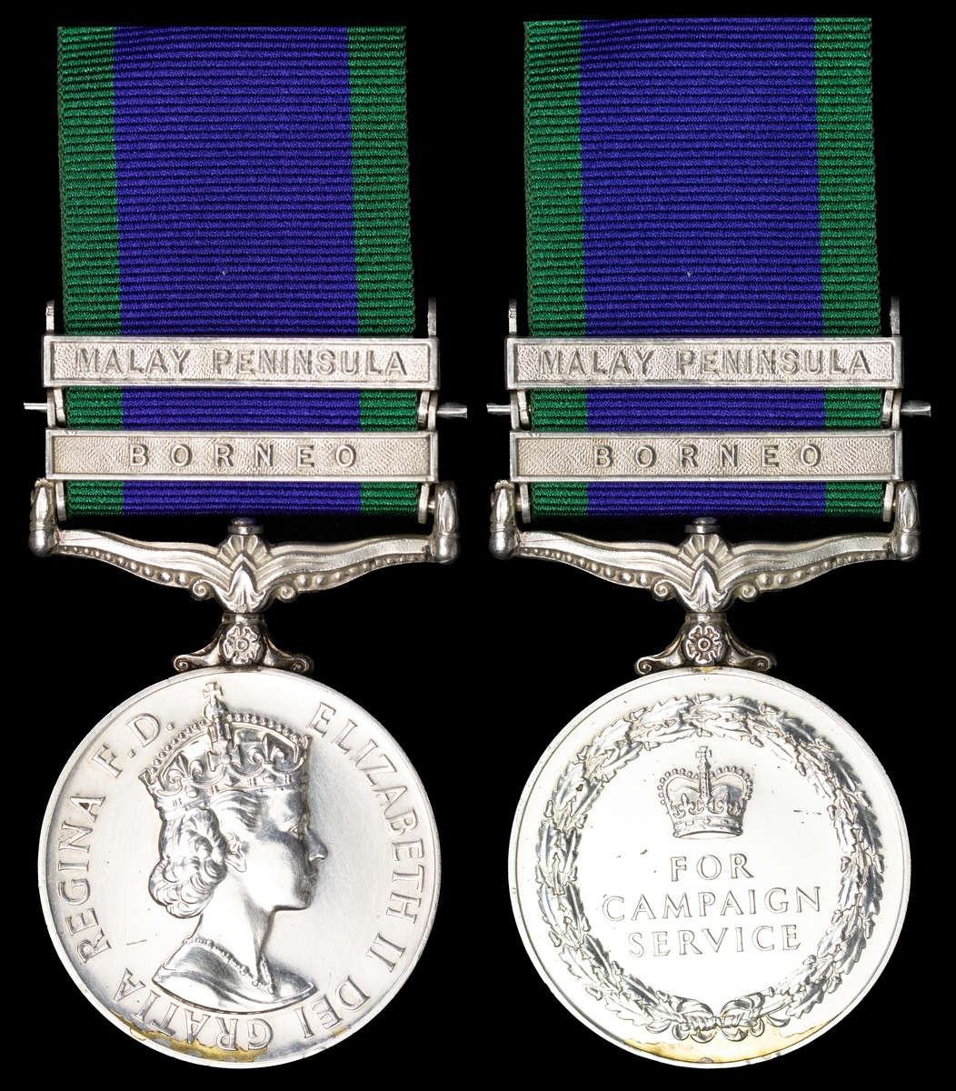 (x) General Service 1962-2007, 2 clasps, Borneo, Malay Peninsula (52350 S. W. Davies), private rod between clasps, sometime lacquered, good very fine