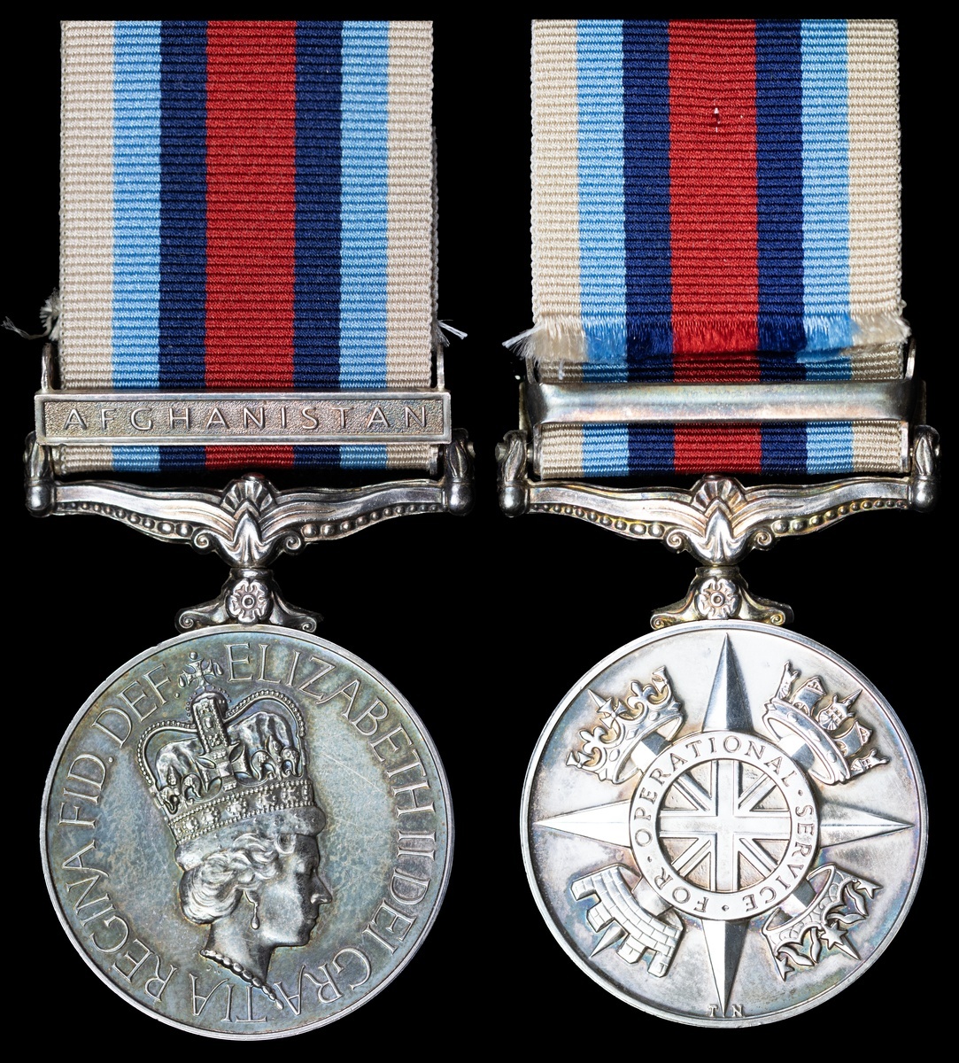 Operational Service Medal 2000, for Afghanistan, 1 clasp, Afghanistan (25160297 Pte S M M Thomas RGBW), pawnbrokers mark to 9 o'clock of disc, otherwise good very fine