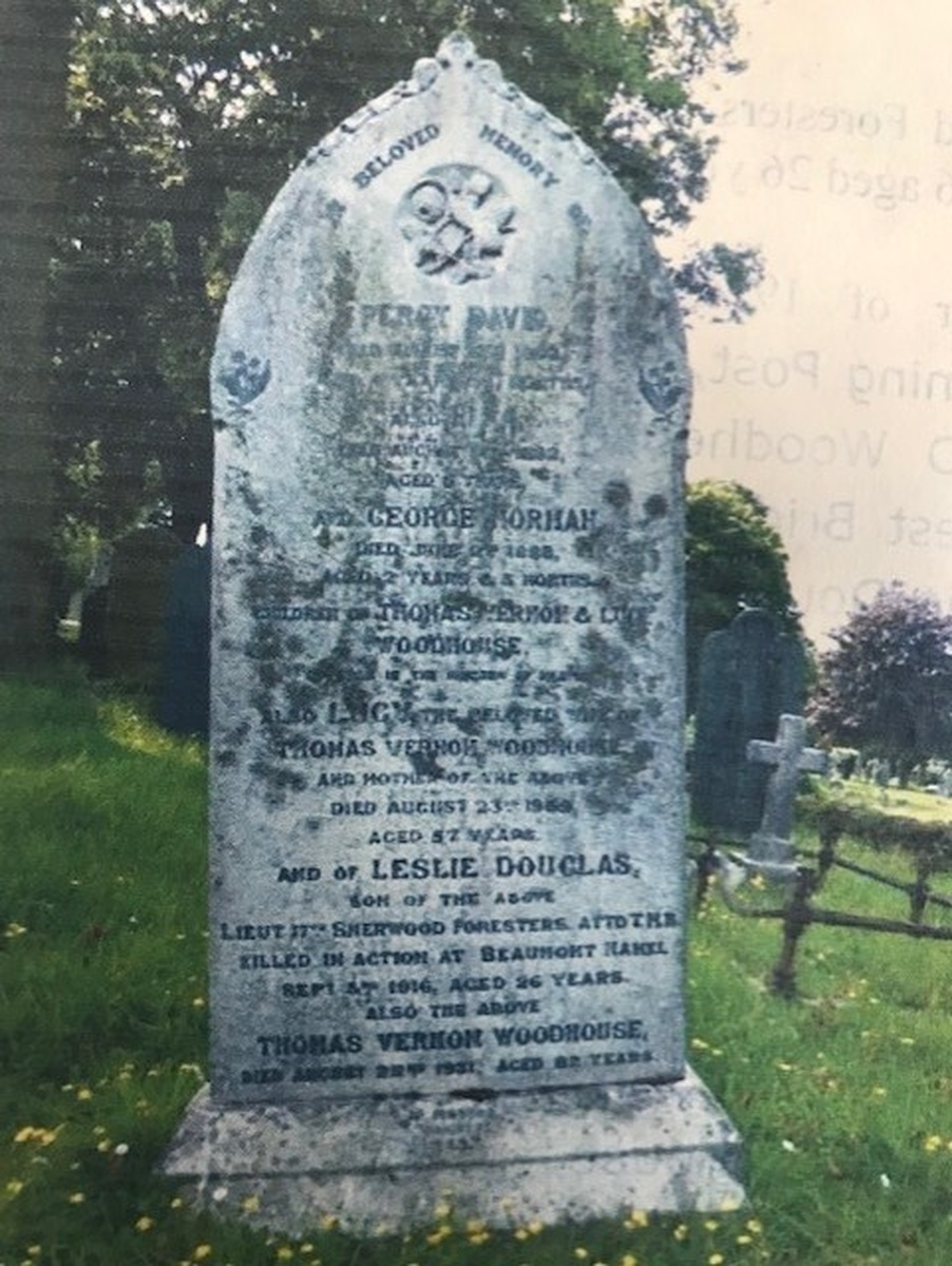 Leslie Douglas Woodhouse was the son of Thomas Vernon Woodhouse and Lucy Hole Woodhouse, of 16, Hound Road., West Bridgford, Nottingham. He was made 2nd Lieutenant with the 15th (Bantam) Battalion, Sherwood Foresters on 23 March 1915, being promoted Lieutenant on 2 August 1915 and became a Lieutenant with the 17th (Welbeck Rangers) Battalion on 20 May 1916.