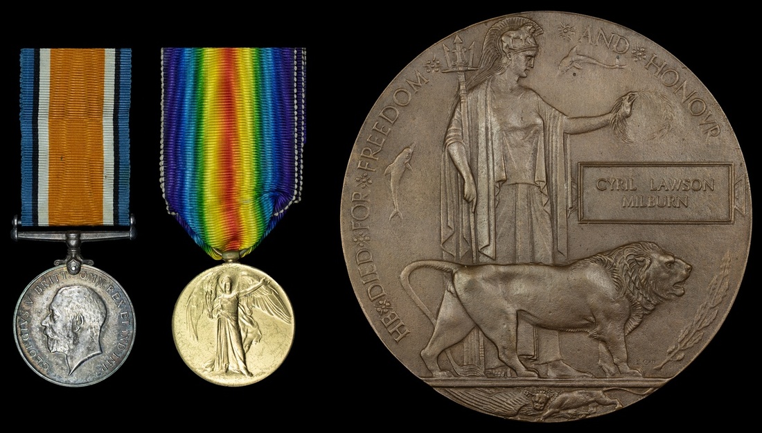 British War and Victory Medals (Capt C. L. Milburn. R.A.F.); Memorial Plaque (Cyril Lawson Milburn), extremely fine (3)