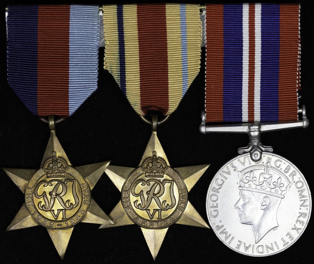 1939-45 Star; Africa Star; War Medal 1939-45, unnamed as issued, mounted for wear, about extremely fine (3)