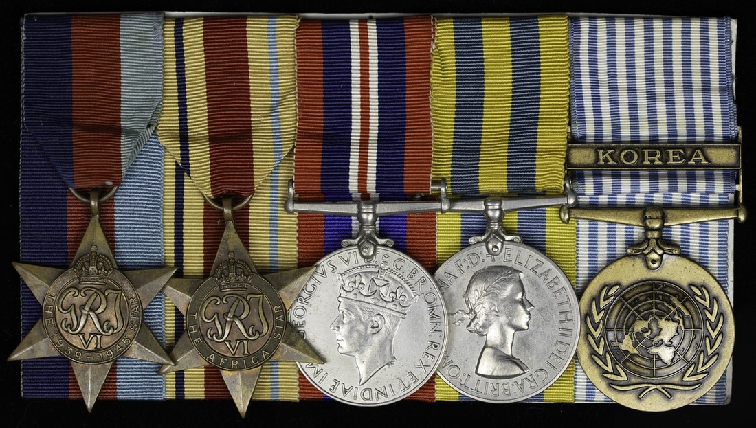1939-45 Star; Africa Star; War Medal 1939-45, these unnamed; Korea 1950-53, 1st issue (4976269 Fus., R.N.F.) correction to service number; U.N. Korea 1950-54, modern issue, very fine (5)