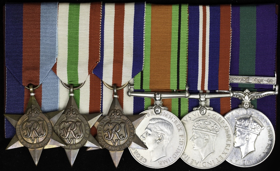 1939-45 Star; Italy Star; France and Germany Star; Defence and War Medals 1939-45; General Service 1918-62, 1 clasp, Palestine 1945-48 (14382007 Sjt. H. Ingham. A.A.C.), very fine (6)