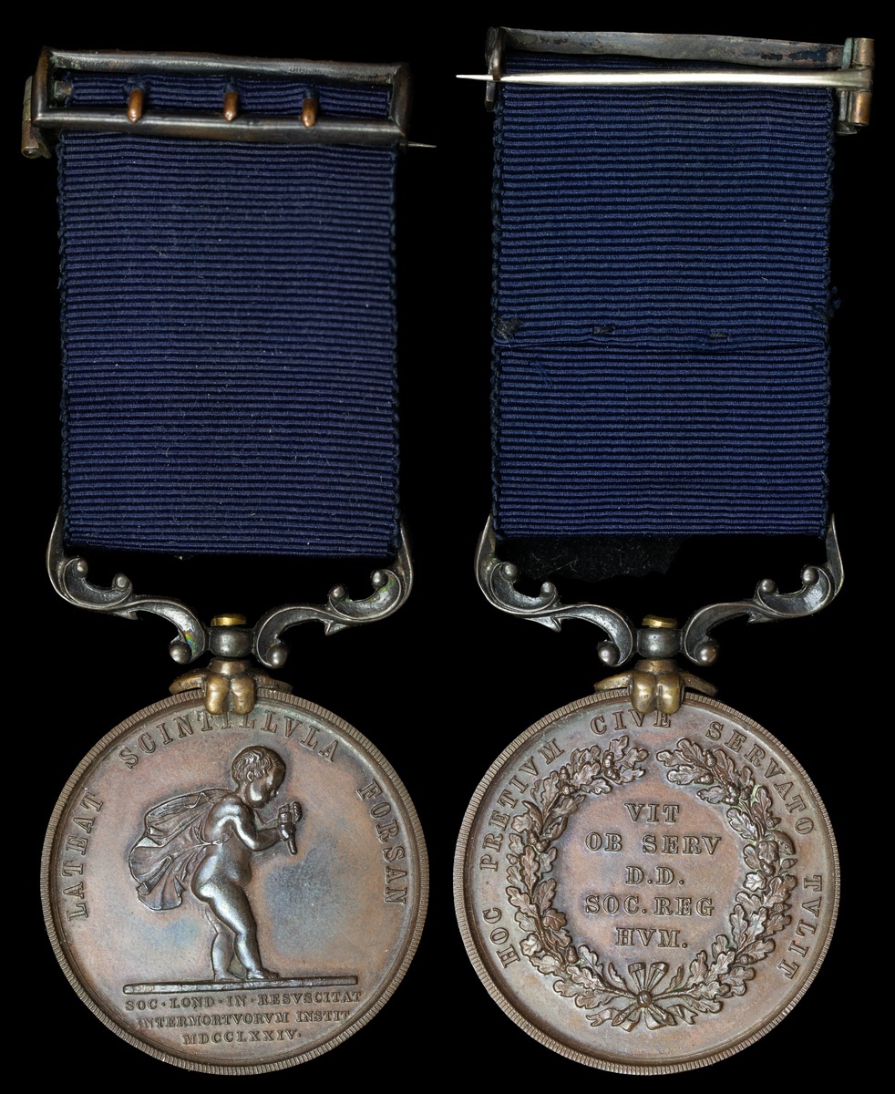 Royal Humane Society, small bronze medal (successful) (S. B. O. Curtiss 20th. May 1924) with integral bronze riband buckle, good very fine, in its Elkington & Co. case of issue