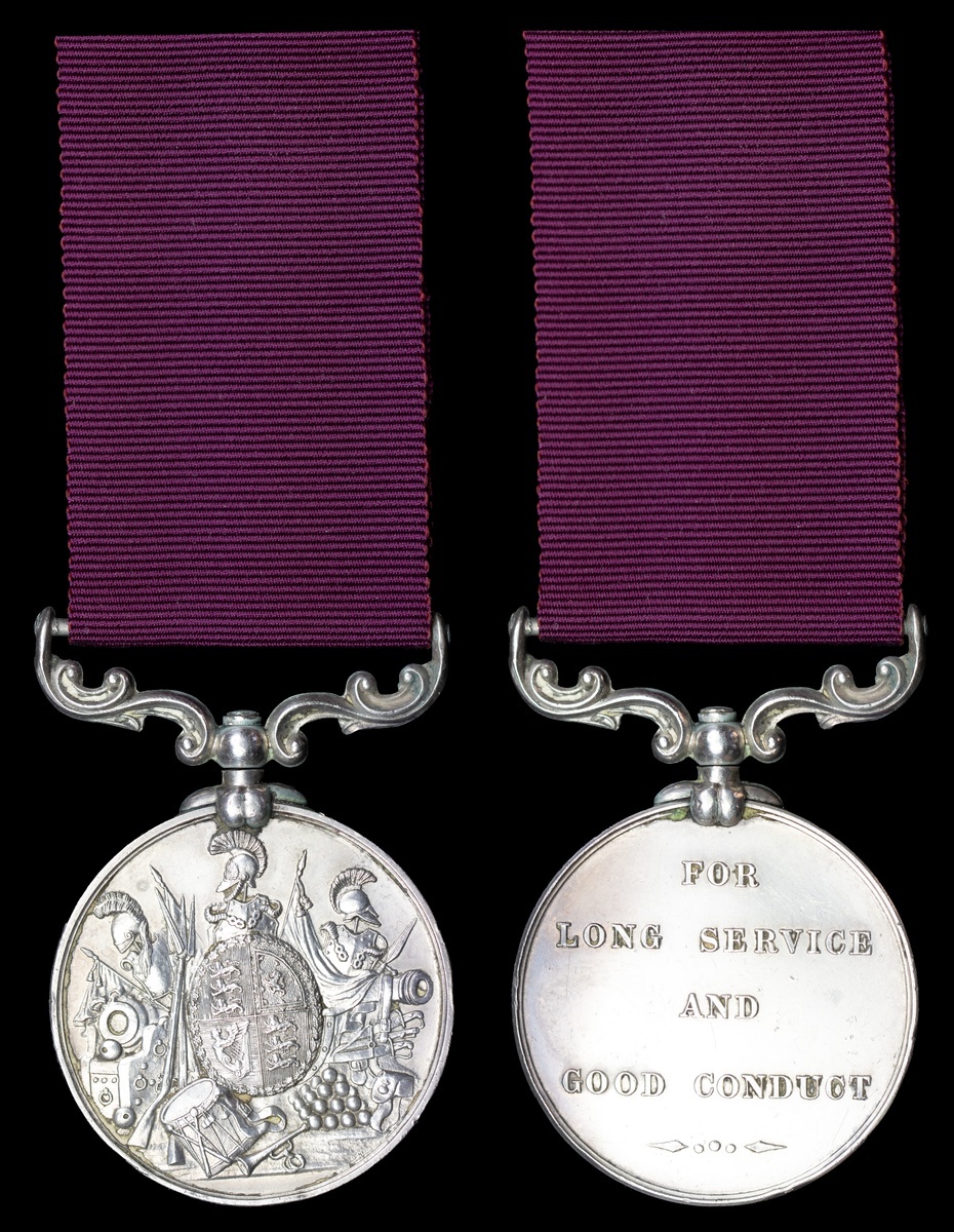 Sahik Cassim was born in Ceylon and was 18 years old when he enlisted in the Asiatic Artillery Ceylon. He served in Ceylon from 25 November 1880 to 1 May 1904, Mauritius from 2 May 1904 to 10 April 1908. His L.S. & G.C. was awarded in 1899; sold together with copied service papers.