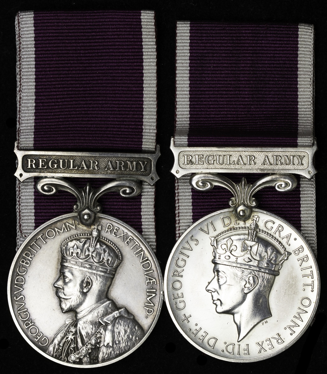 Army L.S. & G.C., G.V.R. (1042995 W.O.CL.II. R. W. Sayer. R.A.); G.VI.R. (5825800 S.Q.M. D. Hall. R. Sigs), the last with small official correction to the first two numbers, otherwise very fine (2)