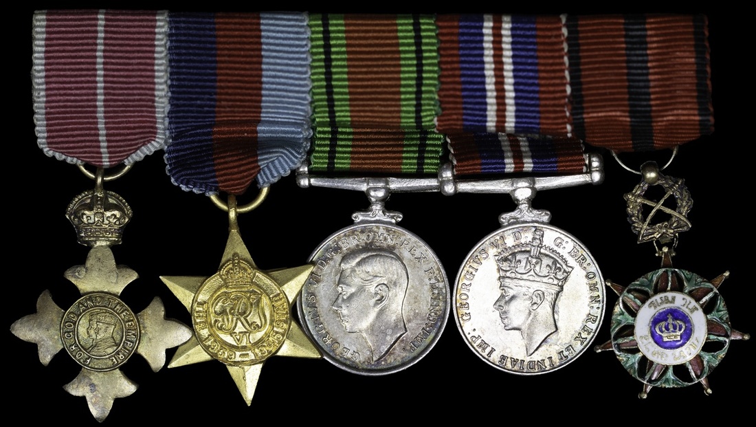 The Most Excellent Order of the British Empire, 2nd type, Military Division, Officer's (O.B.E.) breast Badge; 1939-1945 Star; Defence & War Medals 1939-45; Iraq, Order of El Rafidain, breast Badge, gilt metal and enamel, mounted as worn very fine (5)