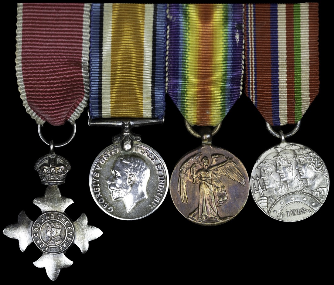 The Most Excellent Order of the British Empire, 2nd Type, Civil Division, Officer's (O.B.E.) breast Badge, silver-gilt; British War and Victory Medals; Italy, Alitpiani Medal 1918, this last rare in miniature, good very fine (4)