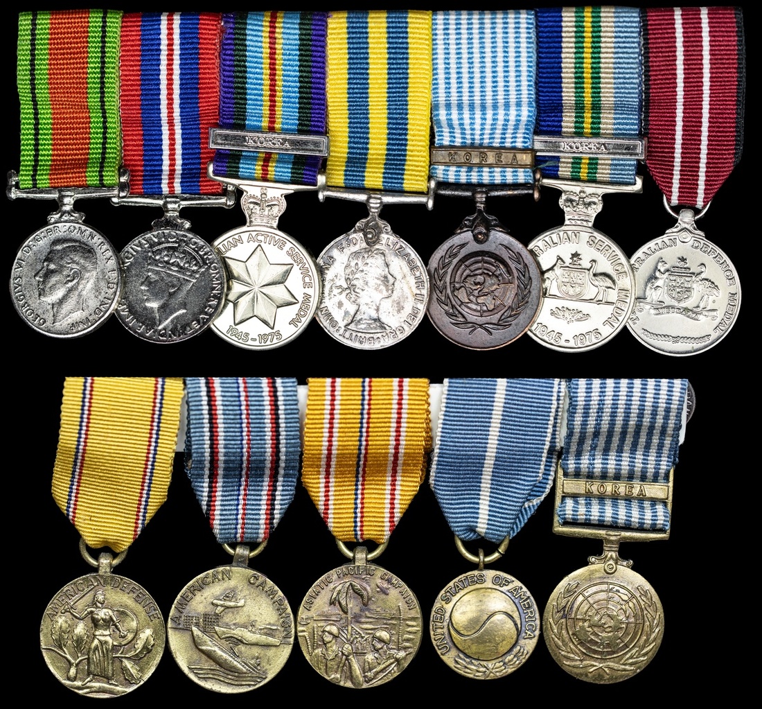 Defence and War Medals 1939-45; Australia, Active Service Medal 1945-72, 1 clasp, Korea; Korea Medal 1950-53; U.N. Korea Medal 1950-54; Australian Service Medal 1945–75, 1 clasp, Korea; Australian Defence Medal, mounted as worn, very fine (7)
