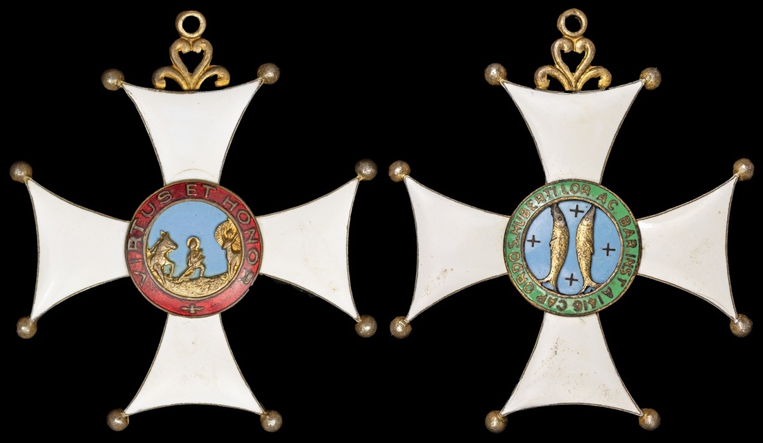 France, Order of Saint Hubert, neck Badge, gilt and enamel, 62mm x 54mm, slight crack to enamel on one reverse panel, otherwise very fine