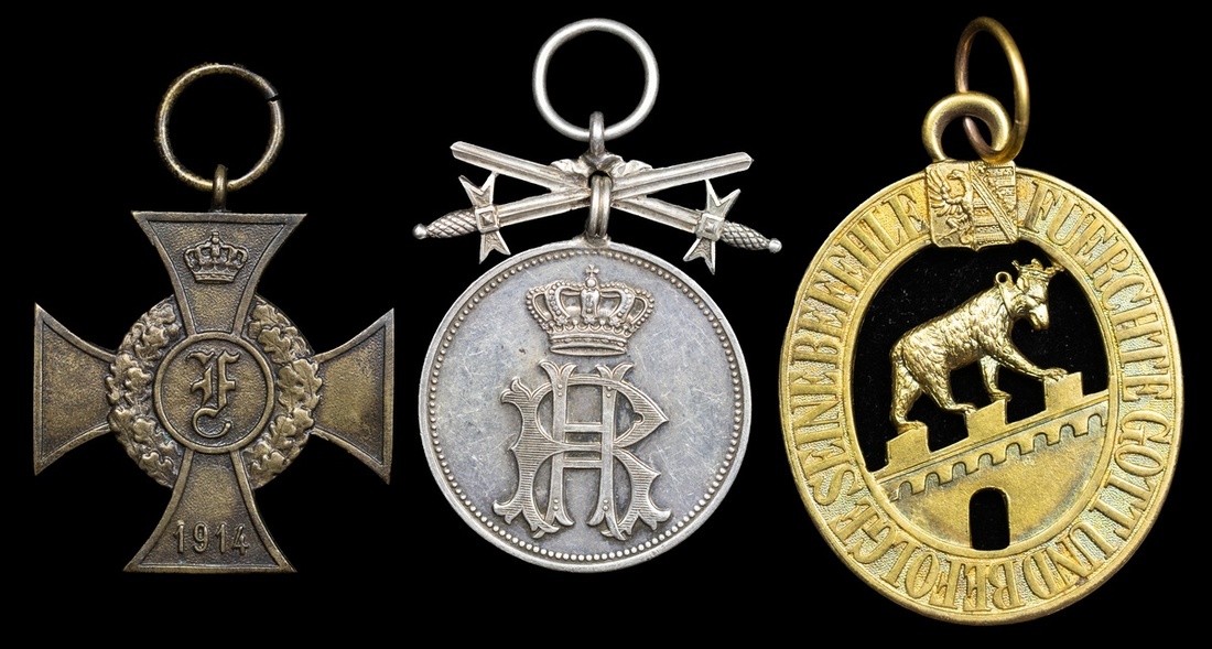Together with Anhalt, Friedrich Cross 1914; Reuss, Merit Medal with swords, silver, both very fine (3)