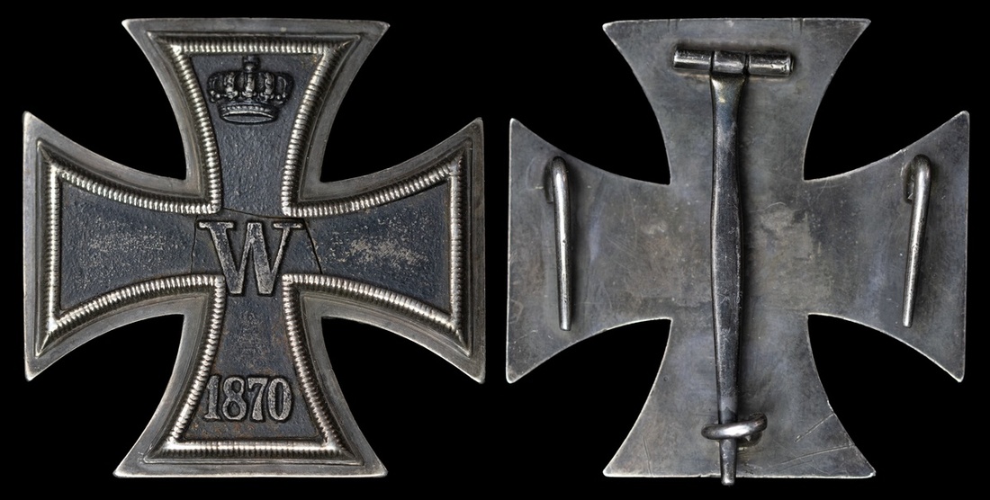 Germany, Prussia, Iron Cross 1870, 1st Class, silver with iron centre, fitted with pin back and two further loops to attach to uniform, unmarked, cracked in three places, some scratching to the reverse, otherwise very fine