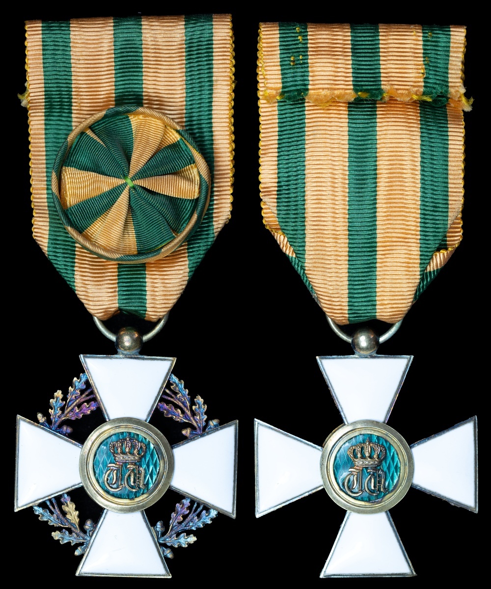 (x) Luxembourg, Kingdom, Order of the Oak Crown, 4th Class Officer's breast Badge, with Rosette on riband, 40mm, silver-gilt and enamel, good very fine, in fitted case of issue
