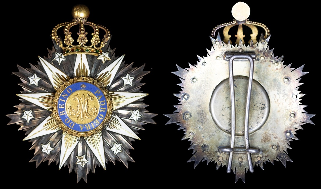 (x) Portugal, Kingdom, Order of Vila Viçosa, Grand Commander's breast Star, 84mm including crown x 72mm, silver-gilt and enamel, enamel loss to a few stars, a couple of these and crown slightly loose, otherwise very fine