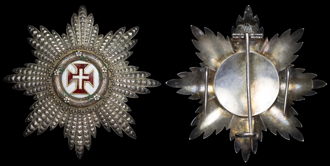 Portugal, Kingdom, Military Order of Christ, 2nd Class breast Star, silver and enamel, 8.5cm x 8.3cm, a couple of leaves missing enamel, otherwise good very fine