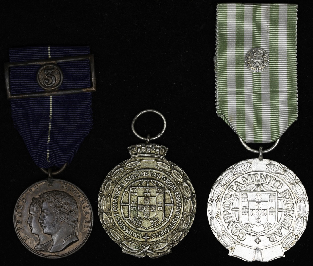 Portugal, Kingdom, Don Pedro's & Dona Maria's War of Liberation Medal for Military Service, with clasp for three years' service, bronze, 31mm; Military Medal for Exemplary Behaviour, silver grade for fifteen years, the two suspension hoops each hallmarked, in its plastic box of issue; Commemorative Medal for Special Service Commissions, very fine (3)