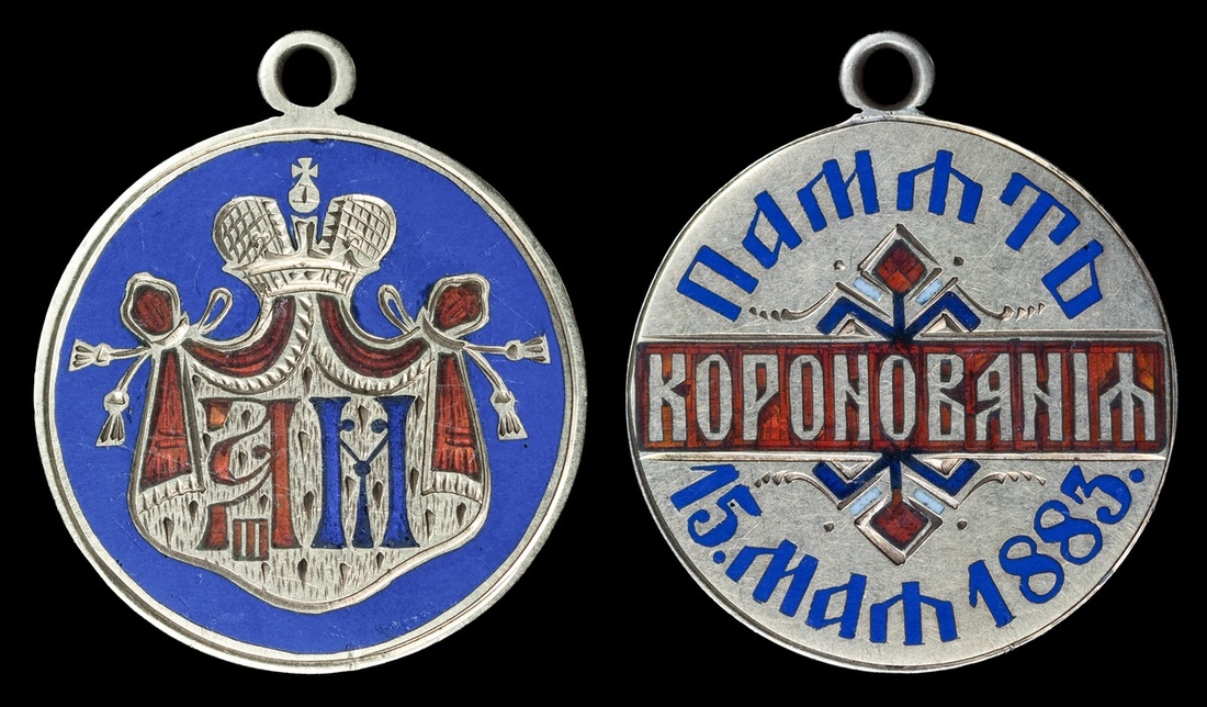 Russia, Imperial, a privately made medalet for the Coronation of Alexander III 15 March 1883, featuring monogram of Alexander III to the obverse, with date to reverse, gold and enamel, 2.2cm, light enamel damage, otherwise very fine