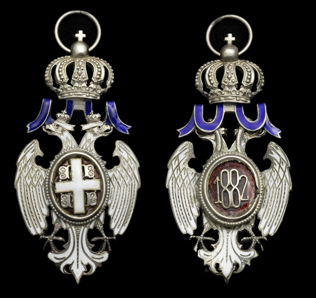 (x) Serbia, Kingdom, Order of the White Eagle, Civil Division breast Badge, 68mm including crown suspension x 35mm, silver and enamel, reverse centre depressed, some enamel chipping and evidence of crude repair, otherwise very fine