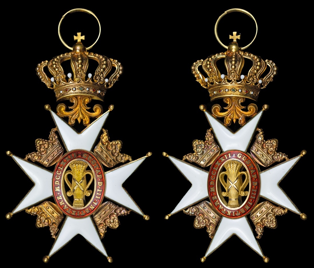 (x) Sweden, Kingdom, Order of the Vasa, breast Badge, by C. F. Carlman, 62mm including crown suspension x 39mm, gold and enamel, maker's mark and '18' hallmarks between lower arms, nearly extremely fine