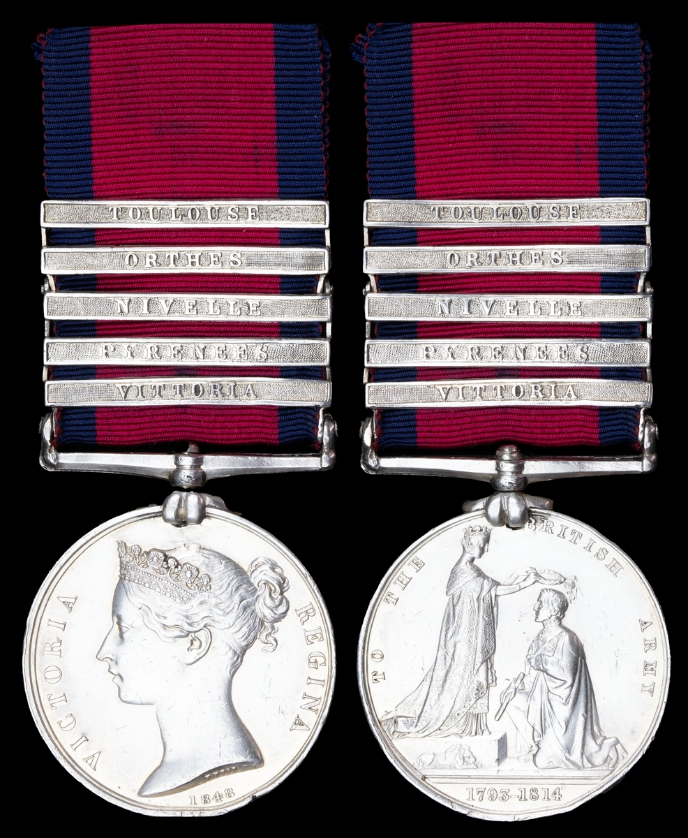'Wounded thumb at Vittoria, scratch on the head in the Pyrenees. Ball through the side in the hip at Toulouse.' (TNA WO116/66 refers).