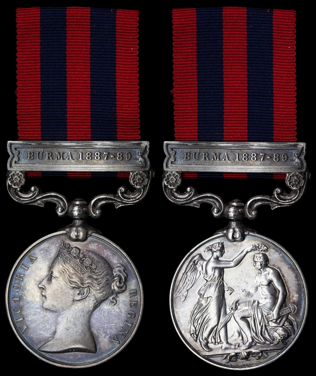 (x) India General Service 1854-95, 1 clasp, Burma 1887-89 (459 Pte M. Flood 2nd Bn Norf R.), slightly polished, very fine