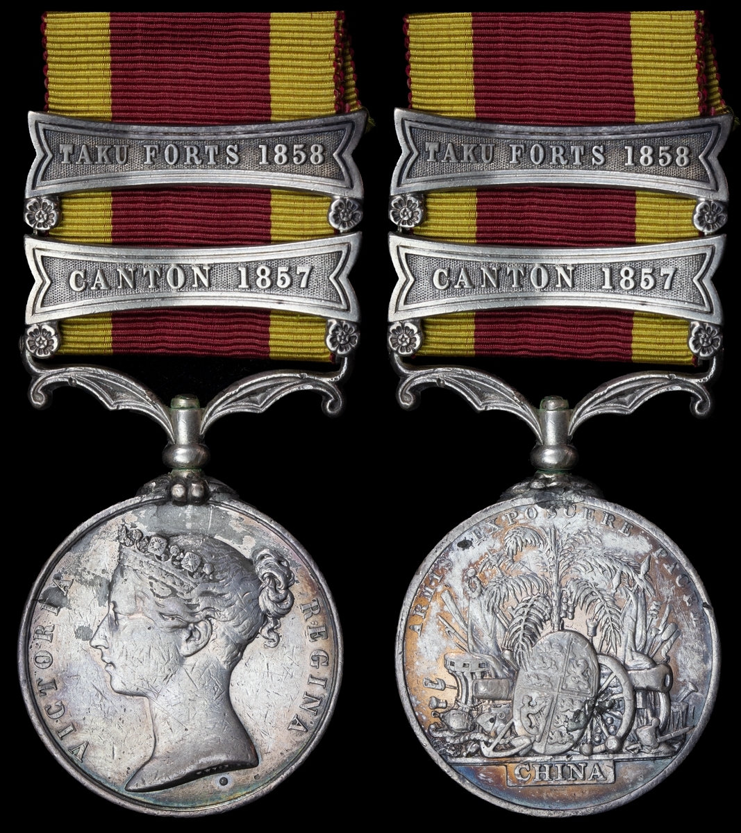 (x) China 1857-60, 2 clasps, Canton 1857, Taku Forts 1858, unnamed as issued to Royal Navy recipients, about very fine