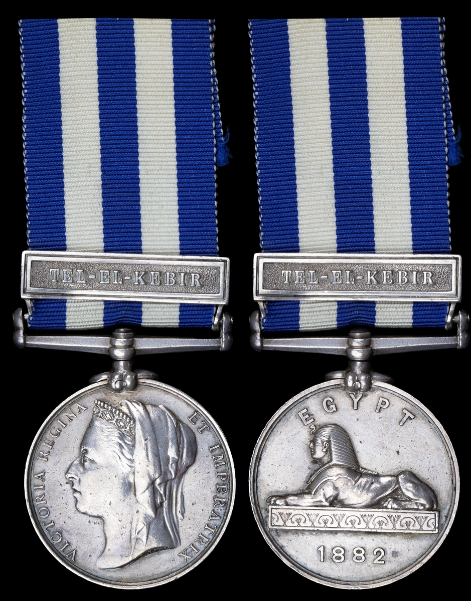 (x) Egypt and Sudan 1882-89, dated reverse, 1 clasp, Tel-El-Kebir (1039 Pte. J. Houston. 1/R. Hrs.), suspension somewhat slack, light pitting, very fine