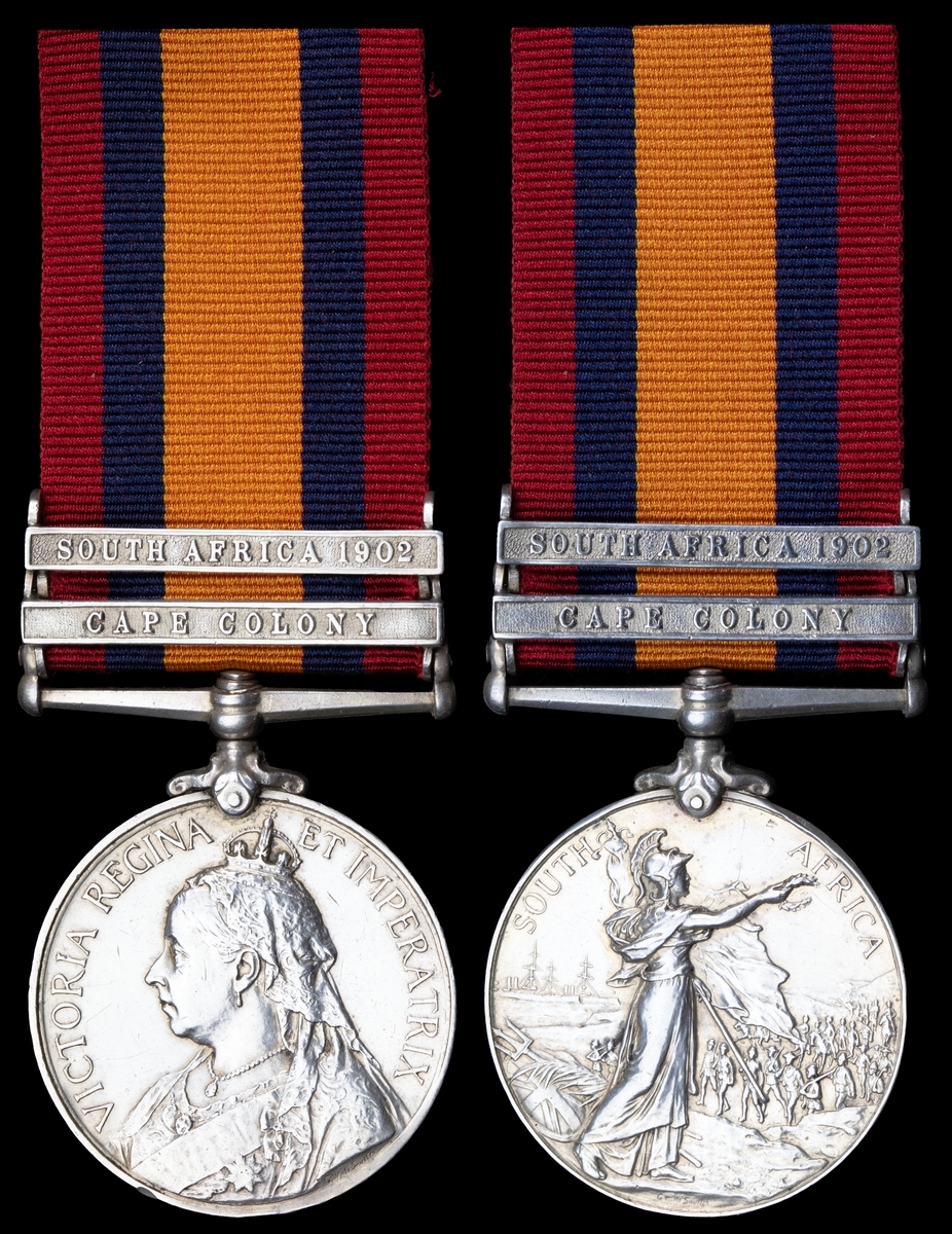 Queen's South Africa 1899-1902, 2 clasps, Cape Colony, South Africa 1902 (39424 Pte G. W. Scotton. 32nd Bn: Imp: Yeo:), light contact marks, otherwise very fine
