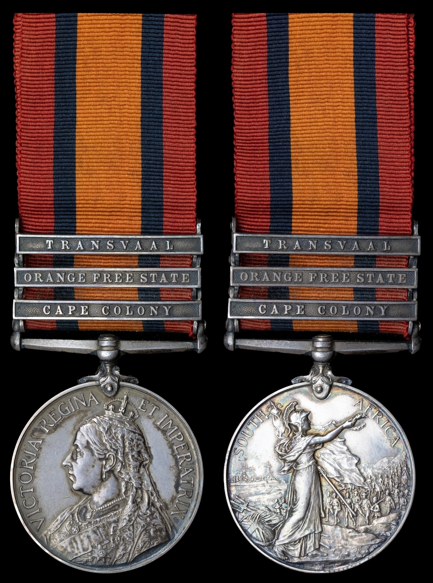 Queen's South Africa 1899-1902, 3 clasps, Cape Colony, Orange Free State, Transvaal (Pte F. Taylor. Imp: Yeomanry Bearer Coy), good very fine