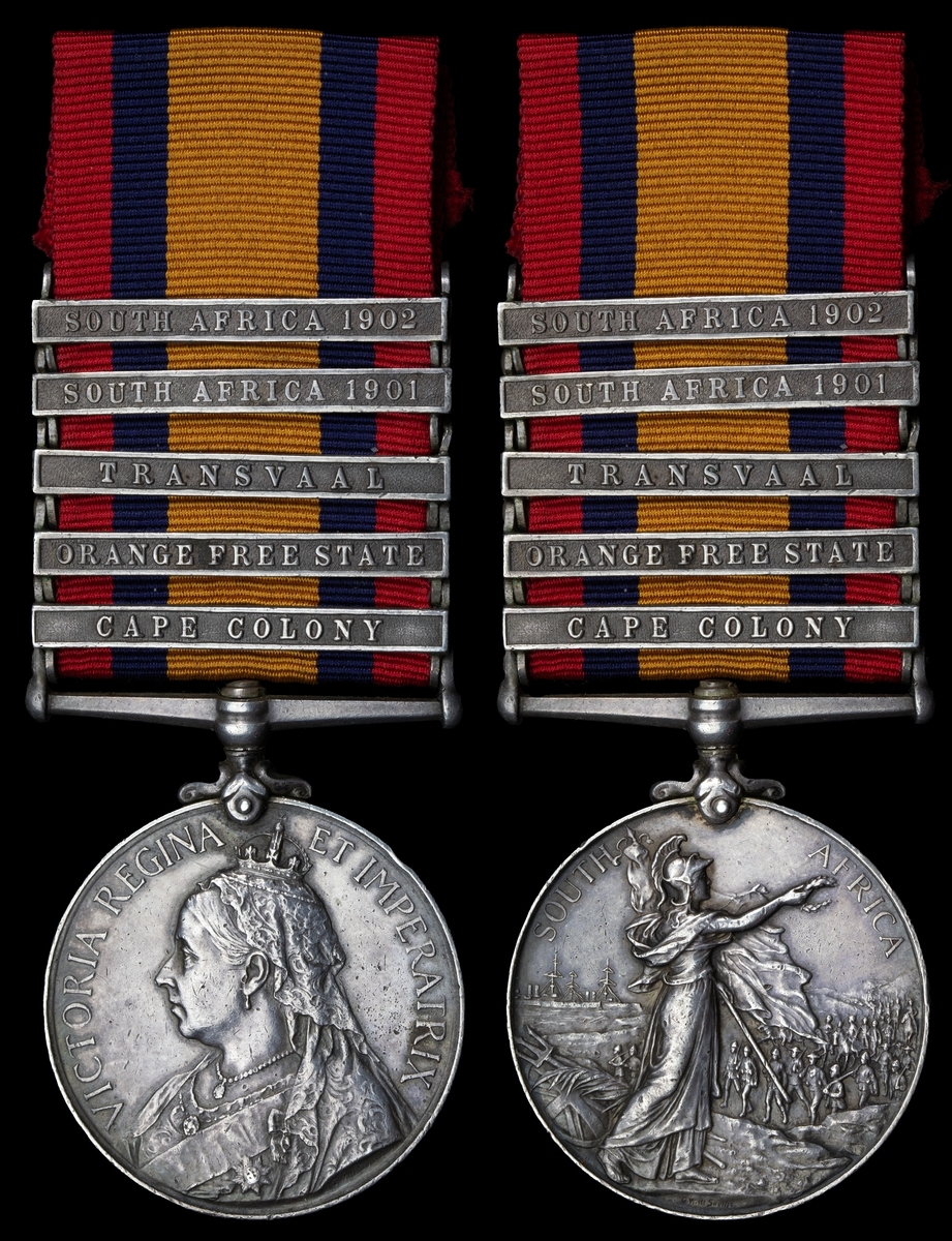 The Queen's South Africa Medal awarded to Lieutenant J. L. B. Claxton, a veteran of the campaign in Egypt who served with the 4th Dragoon Guards as a member of the Camel Corps and was in action at Abu Klea; he was later 'mentioned' in the Second Boer War with the Imperial Yeomanry and saw yet more action with the Canadian Army in the Great War