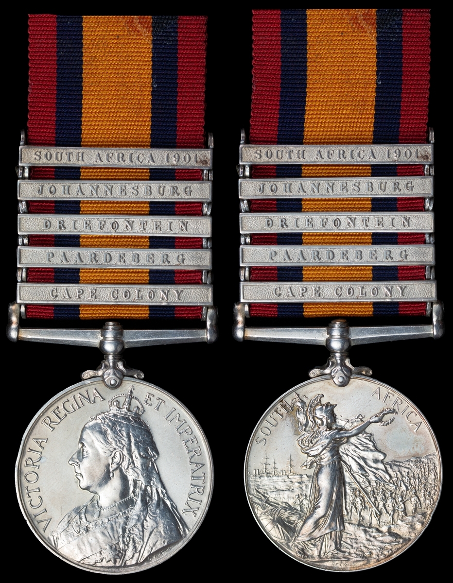 Queen's South Africa 1899-1902, 5 clasps, Cape Colony, Paardeberg, Driefontein, Johannesburg, South Africa 1901 (2759 Pte. J. Wynn, 2nd Shropshire Lt. Infy.), edge bruise, very fine