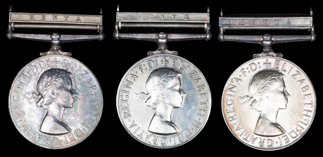 Africa General Service 1902-56, 1 clasp, Kenya (3) (N. 48329 Pte. Augustino. K. E.A.A.M.C.; T. 353 Sp. Mwangi Mbulo. Kenya Regt. (TF); 121 T.P. Mbubi. Kioko.), official correction to last, good very fine (3)