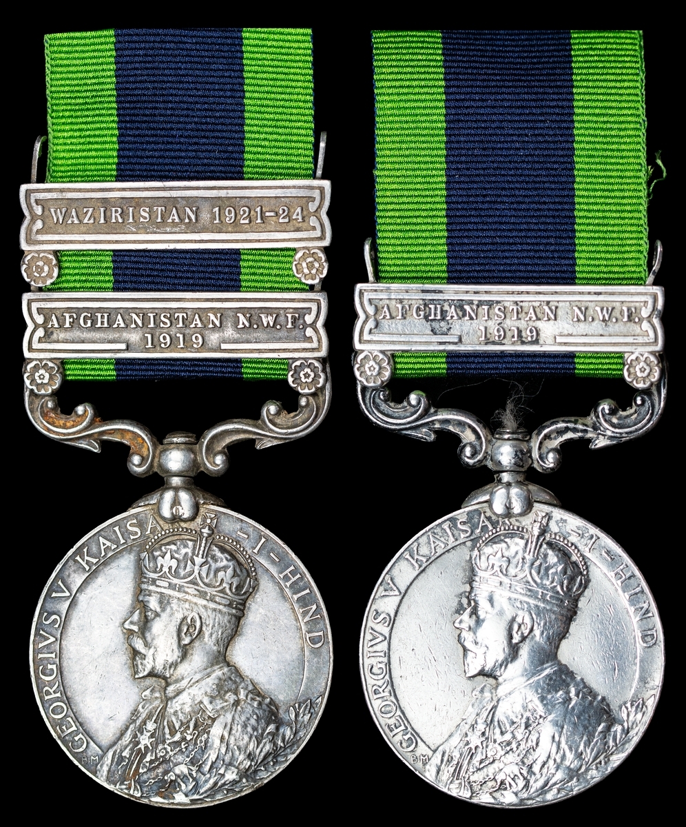 India General Service 1908-35 (2), 1 clasp, Afghanistan N.W.F. 1919 (199 Rfmn. Newal Sing Ghale, 1-4 Grks.); 2 clasps, Afghanistan N.W.F. 1919, Waziristan 1921-24 (653 Rfmn. Manbahadur Khattri, 1-2 Grks.), rod between clasps on the second, nearly very fine (2)