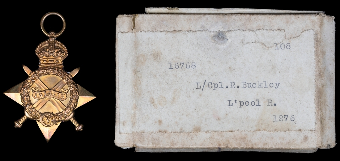 The 1914-15 Star awarded to Lance-Corporal R. Buckley, Liverpool Regiment, who was killed in action on 1 July 1916, the First Day of the Battle of the Somme