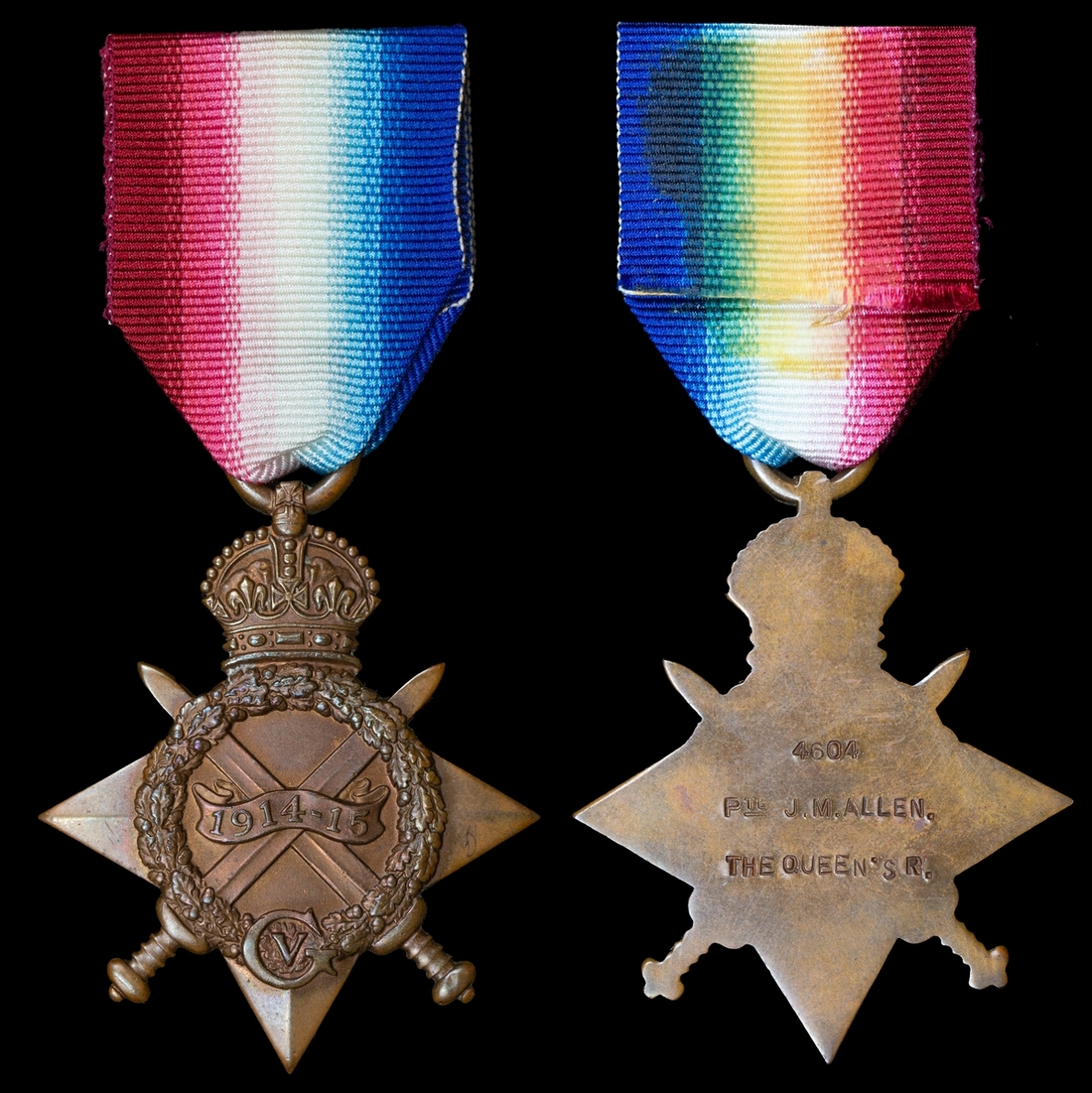 The 1914-15 Star awarded to Private J. M. Allen, 2nd Battalion, The Queen's (Royal West Surrey) Regiment, who was killed in action on the First Day of the Battle of the Somme