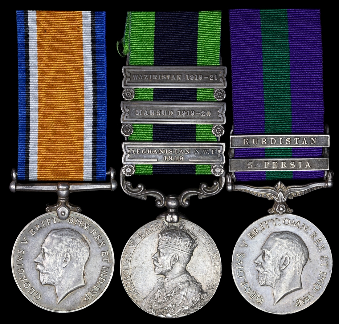 British War Medal 1914-20 (3380 Sep. Suleman. 1-55 RIF.); General Service 1918-62, 2 clasps, S. Persia, Kurdistan (3380 Sepoy Suleman. 1-55-Coke's R); India General Service 1908-35, 3 clasps, Afganistan N.W.F 1919, Mahsud 1919-20, Waziristan 1919-21 (3380 Sep Suleman. 1-55 RIF.) about very fine (3)