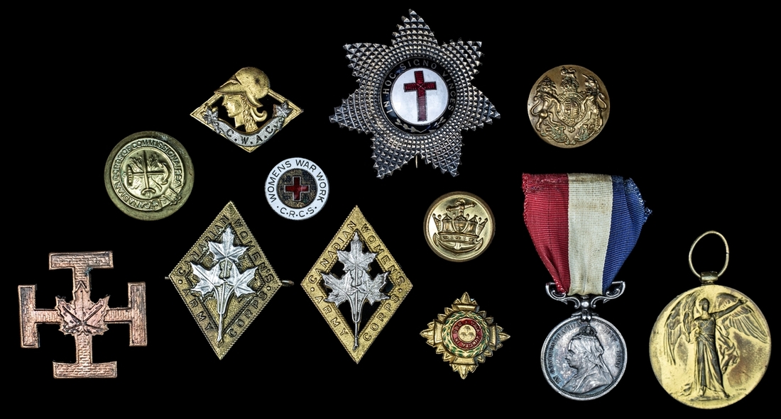 Sold together with several badges and buttons to include Canadian Women's Army Corps; Canadian Red Cross Society badge for Women's War Work etc.