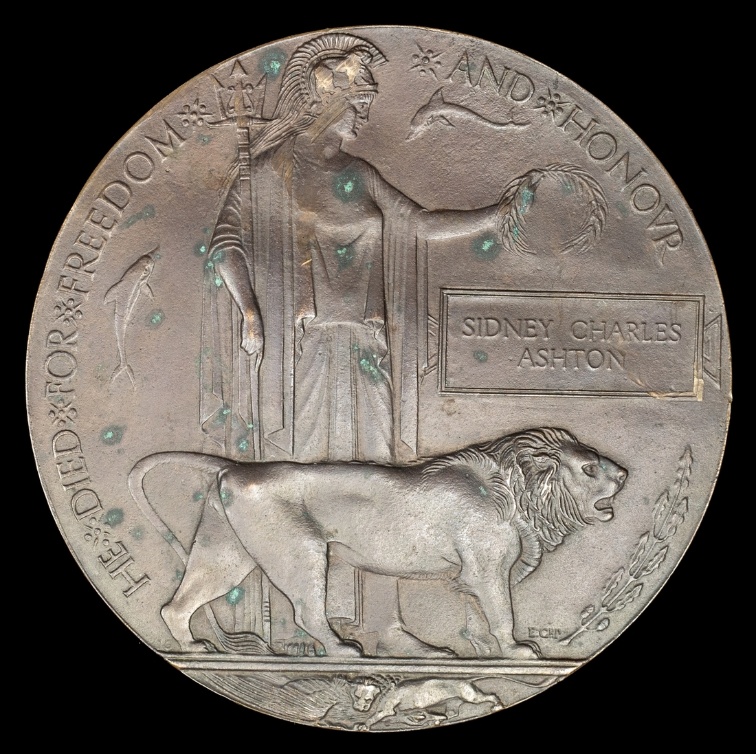 Great War Bronze Memorial Plaque (Sidney Charles Ashton), some verdigris spots, very fine