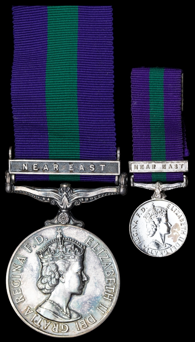 General Service 1918-62, 1 clasp, Near East (2/Lt. M. N. C. Euman. R.F.), in named card box of issue; together with the related miniature award, nearly extremely fine (2)