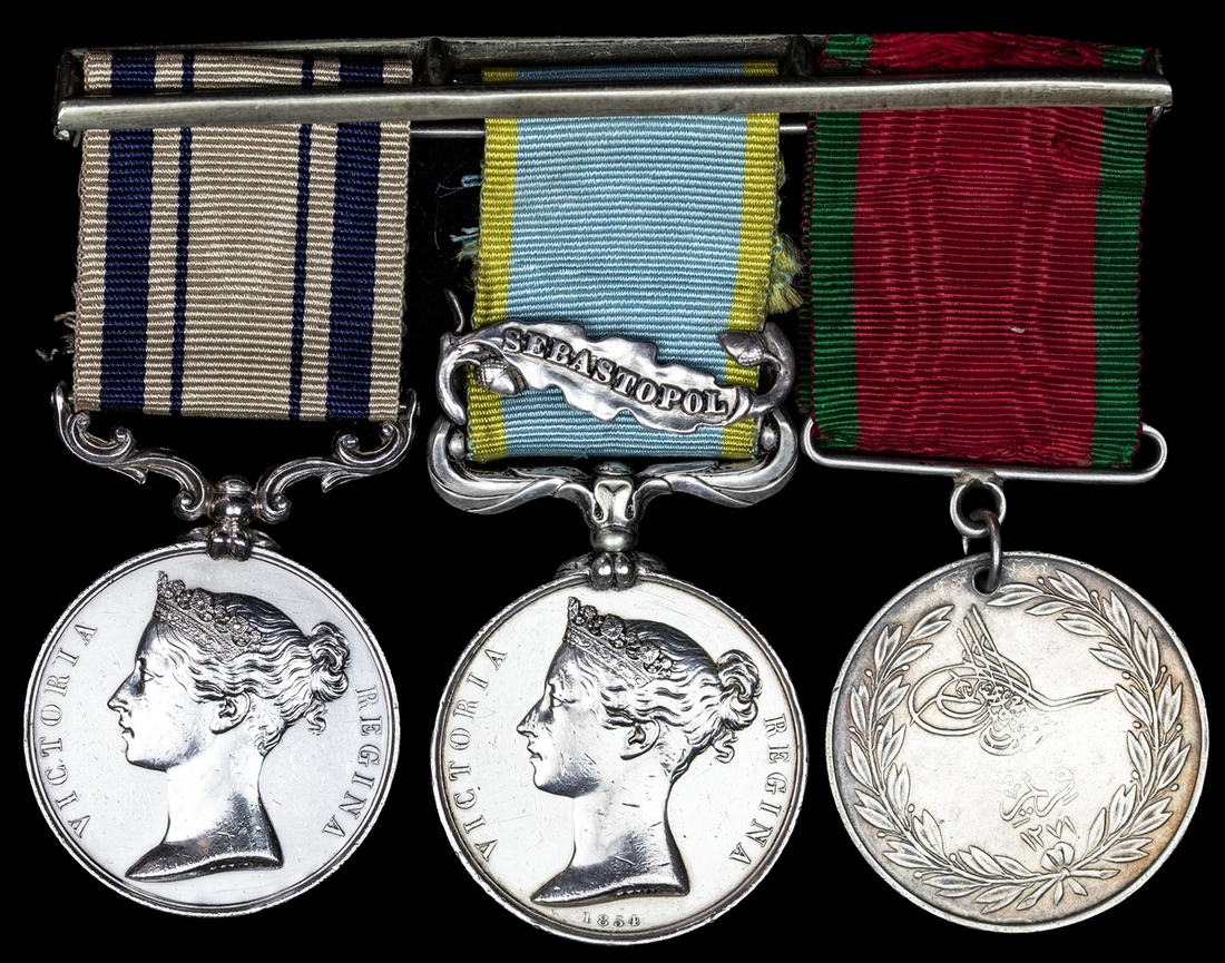 South Africa 1834-53 (J. Jervis. Rl Saprs & Minrs.); Crimea 1854-56, 1 clasp, Sebastopol, an unnamed example; Turkish Crimea, British issue, fitted with a replacement straight bar suspension, mounted on a contemporary straight bar suspension for wear light contact marks, very fine (3)