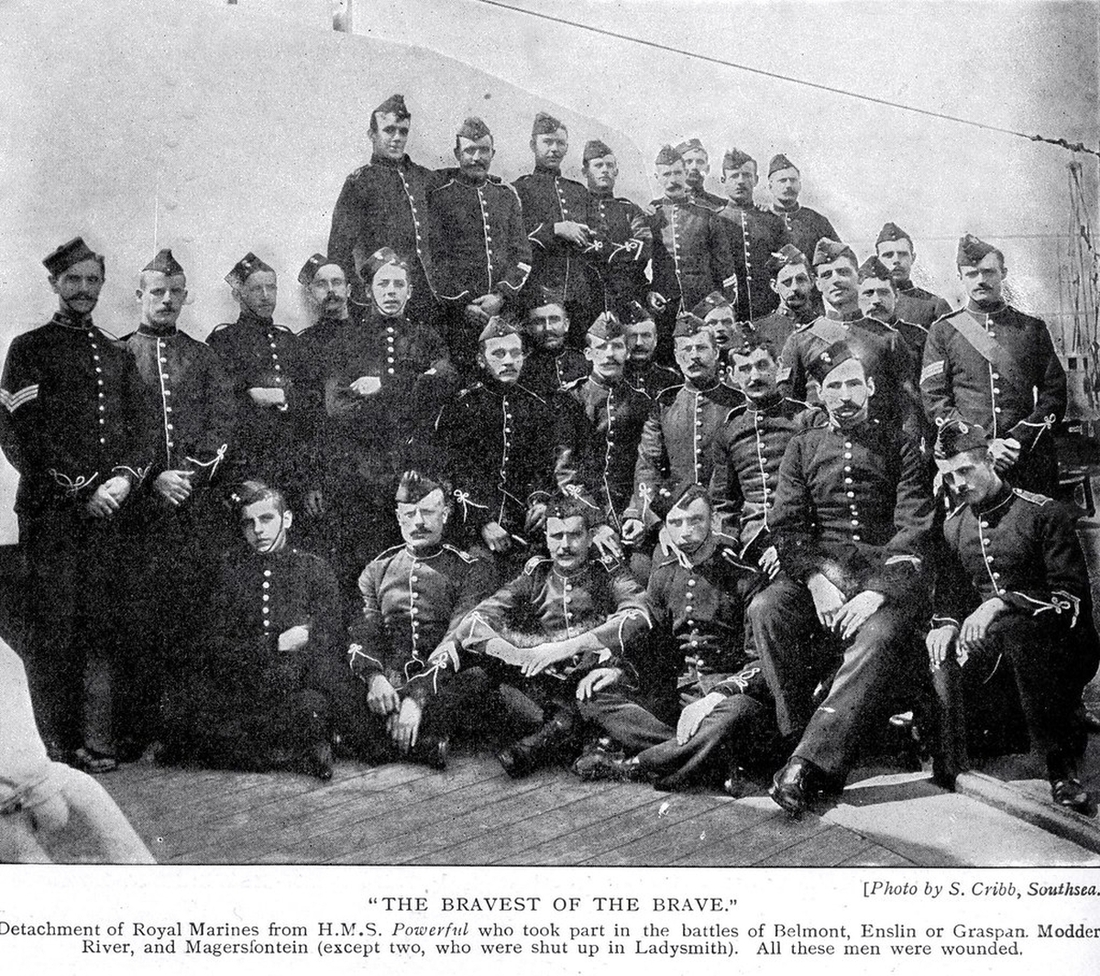 George Cassey was born on 12 April 1878 at Salisbury, Wiltshire. Enlisting into the Royal Marines Light Infantry at Salisbury on 21 January 1896, he was at that time a baker like this father. Posted for the first tour of the new cruiser Powerful in June 1897, he was to serve with her on the China Station for the next two years. It was at the point of her return home that the Second Boer War broke out.
