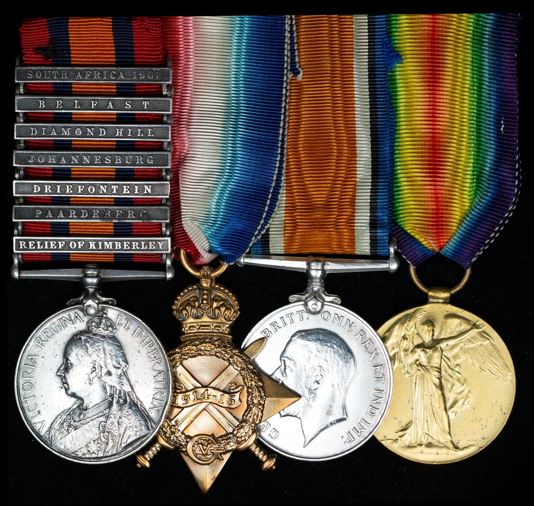 Queen's South Africa 1899-1902, 7 clasps, Relief of Kimberley, Paardeberg, Driefontein, Johannesburg, Diamond Hill, Belfast, South Africa 1901 (2464 Pte. R. Cottingham, 2nd Shropshire Lt. Inf.); 1914-15 Star (12924 Pte R. H. Cottingham. R.Fus:); British War and Victory Medals (GS-12924 Pte. R. H. Cottingham. R.Fus.), light contact marks, very fine overall (4)