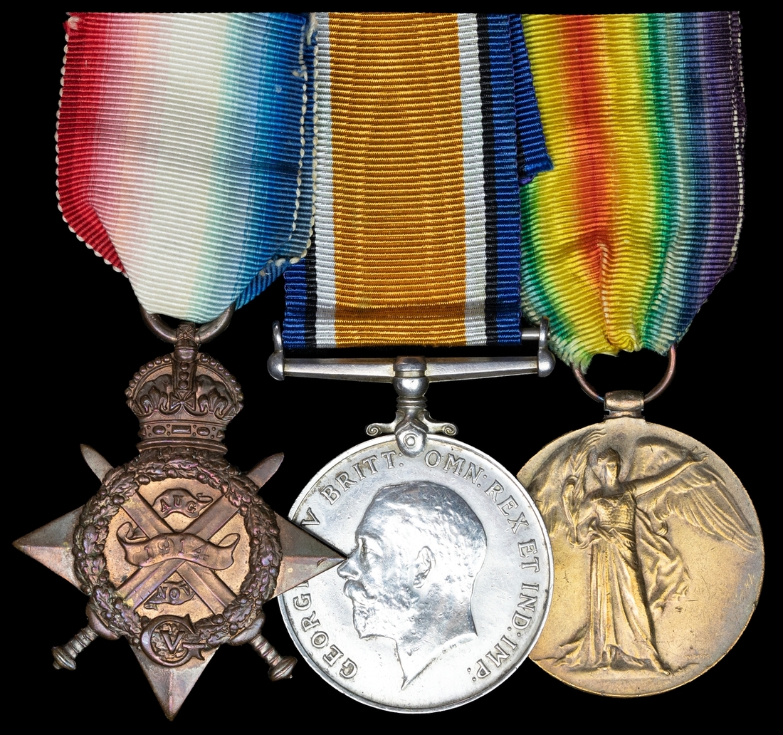 A Great War 1914 Star group of three awarded to Private F. Blows of the Monmouthshire Regiment, who served with the 2nd Battalion that took part in the 'Christmas Truce' of December 1914, and who was subsequently discharged on 3 August 1917 as a result of sickness