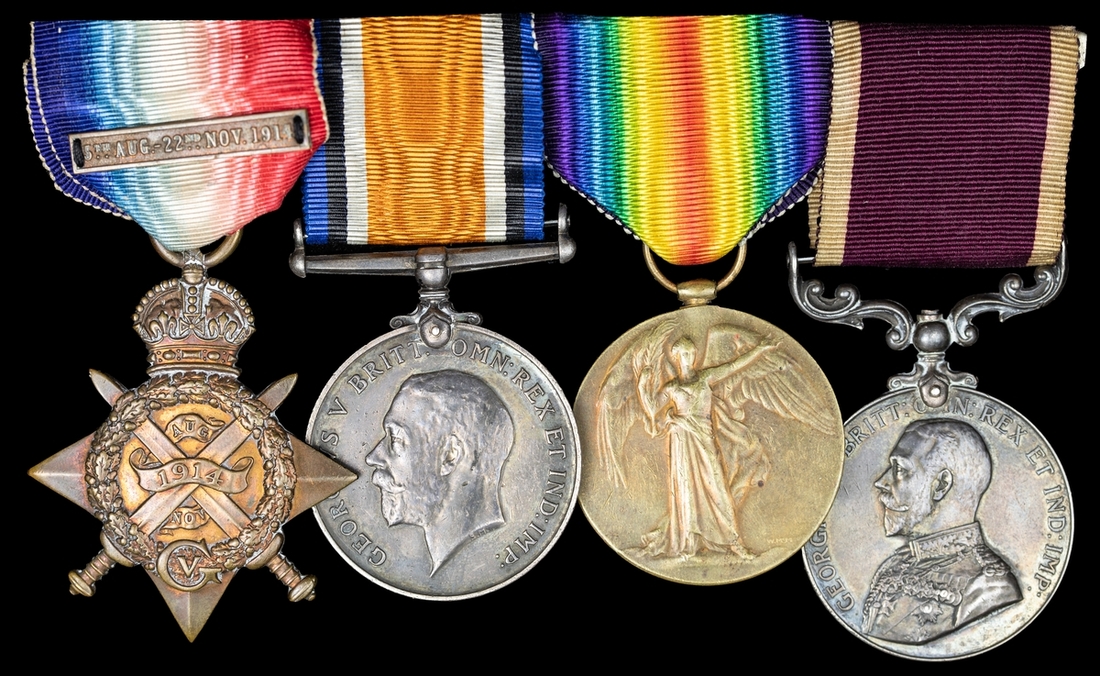 1914 Star, with clasp (9045 Pte G. Bonnick. 2/Conn: Rang.); British War and Victory Medals (9045 Pte. G. F. Bonnick. Conn. Rang.); Army L.S. & G.C., G.V.R., (7143143 Sjt. G. F. Bonnick. R. Innis. Fus.), mounted as worn, very fine (4)