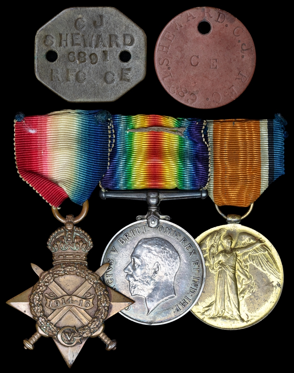 1914-15 Star (6891 2.A.M. C. H. Stewart. R.F.C.); British War and Victory Medals (6891 1.A.M. C. J. Sheward. R.A.F.), note spelling variations, very fine, with pressed card identity discs, (3)