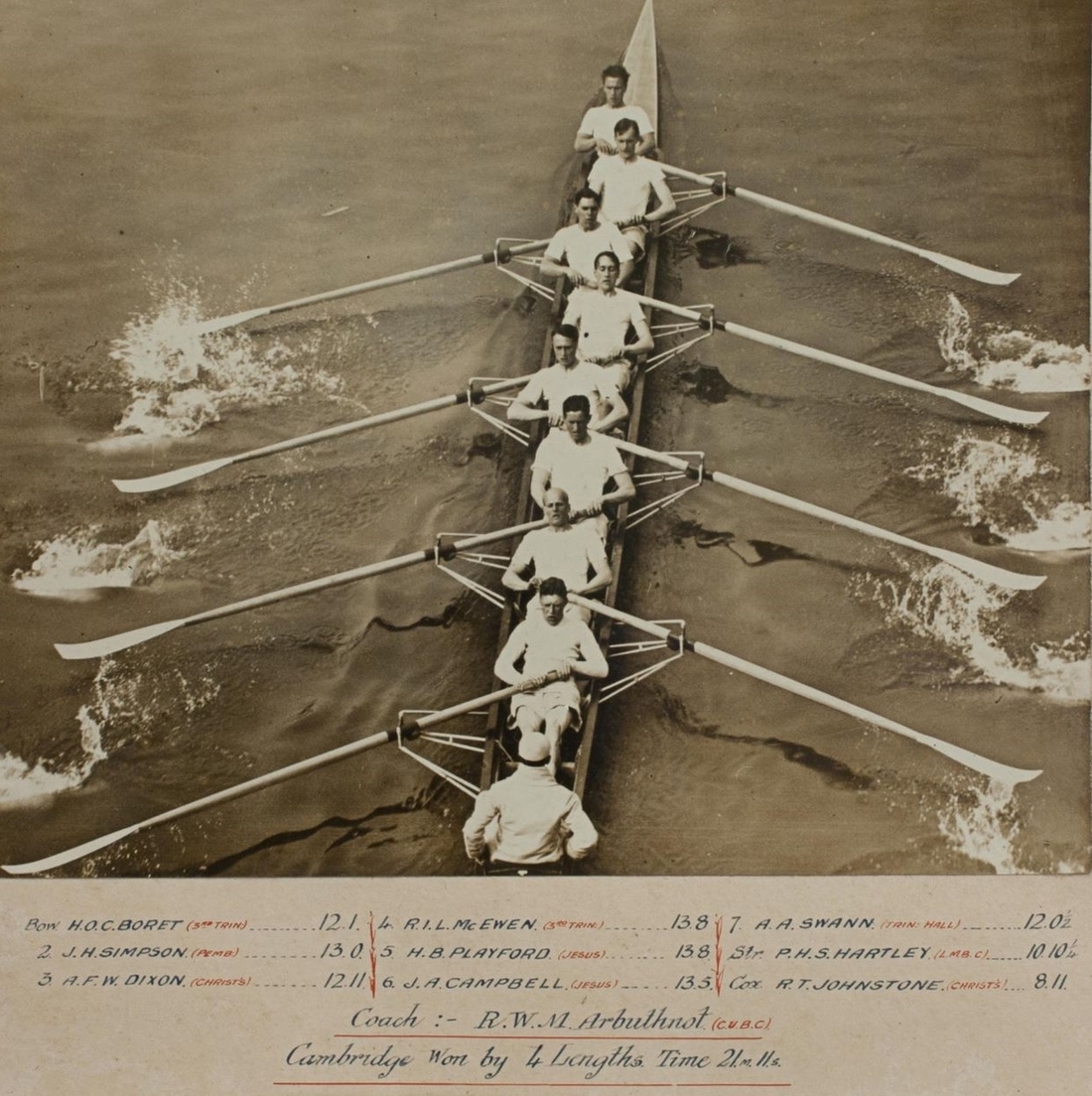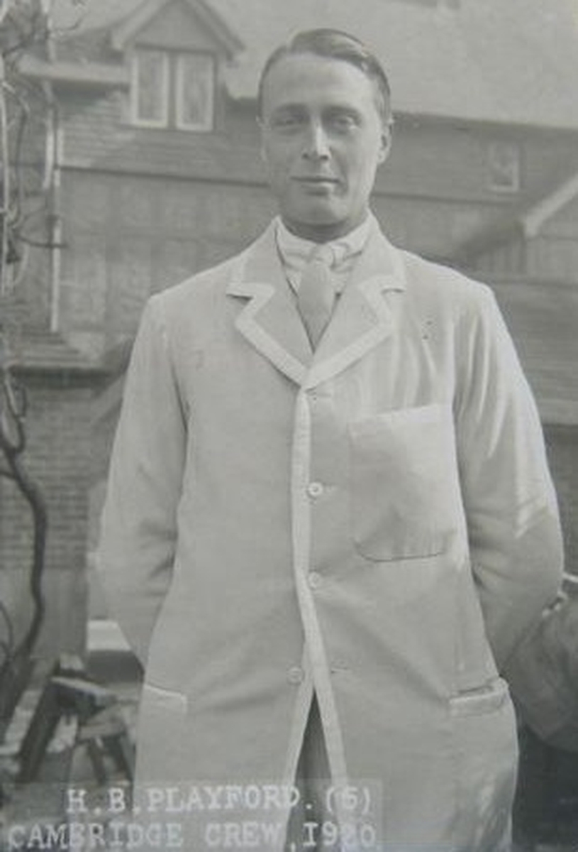 The Reverend Humphrey Blake Playford was born in 1896 and was educated at St. Paul’s School, London. He served during the Great War as a Lieutenant in the Army Service Corps, attached to the Royal Air Force. Subsequently going up to Jesus College, Cambridge, he was President of the Cambridge University Boat Club, 1921-22, and was ‘distinguished by rowing in three successful races against Oxford [in the Boat Race 1920, 1921, and 1922] and rowing Head of the River for [Jesus] College in the same three years.’ Ordained in Holy Orders, he subsequently became a Housemaster at Stowe and is recorded as wanting to do ‘his bit’ in the Second World War: ‘The Reverend Humphrey Playford, now rising 40 [sic], had managed to be driving ambulances in Nazi-threatened France [in the summer of 1940]’, before being compelled to beat a hasty retreat. He died in 1981.