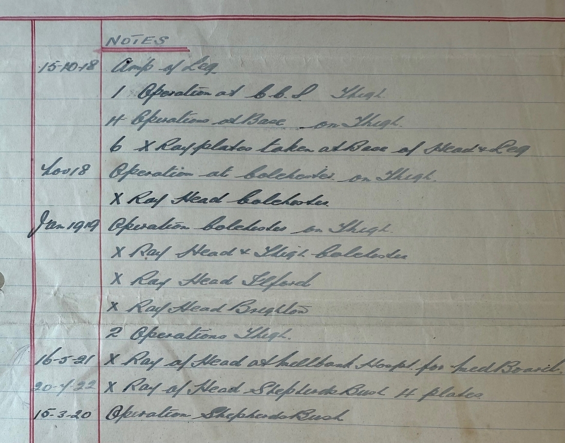 Those wounds required the left leg to be amputated some 12 inches below the hip on 15 October 1918 and in the following years, he required no less than ten further painful operations to repair and amend the original amputation through to March 1920. He was granted a 100% pension for life from September 1924 but was not one to just idly draw the pension to which he was entitled.